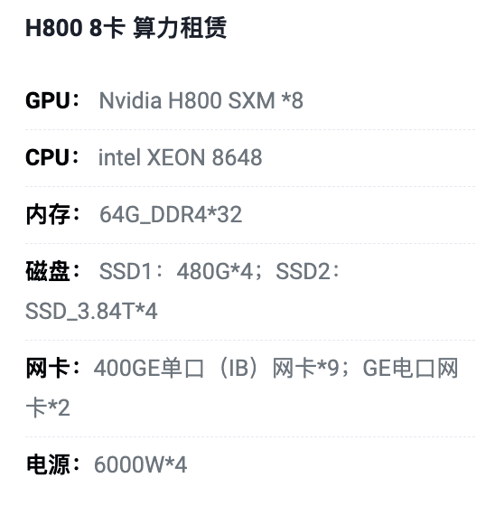 佛山H800八卡算力租用价格